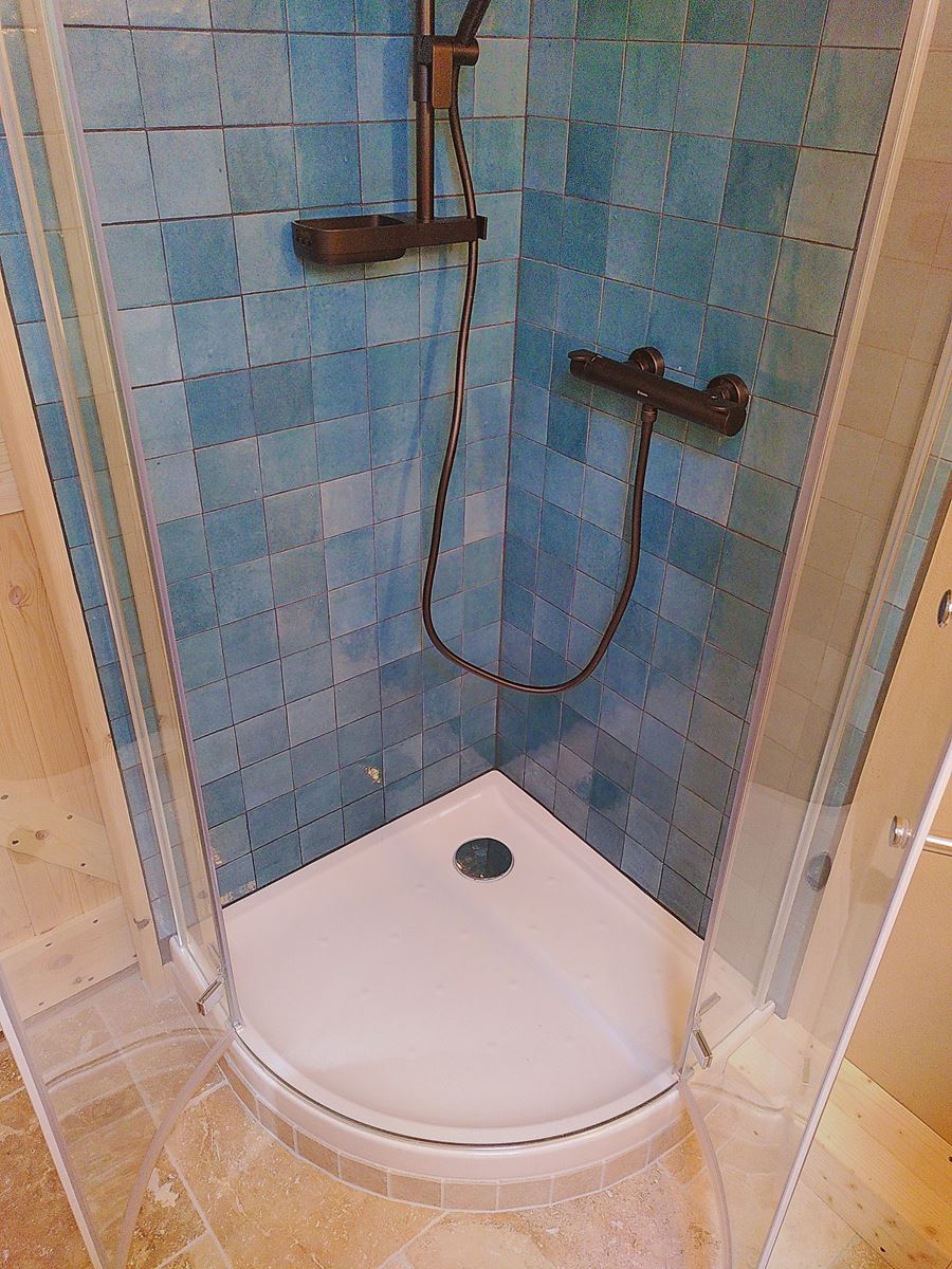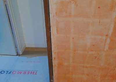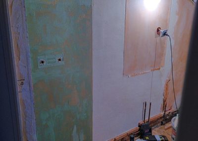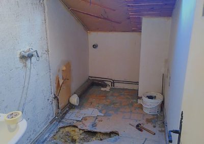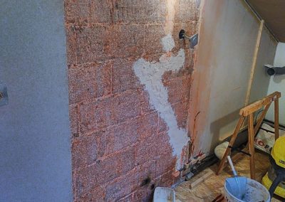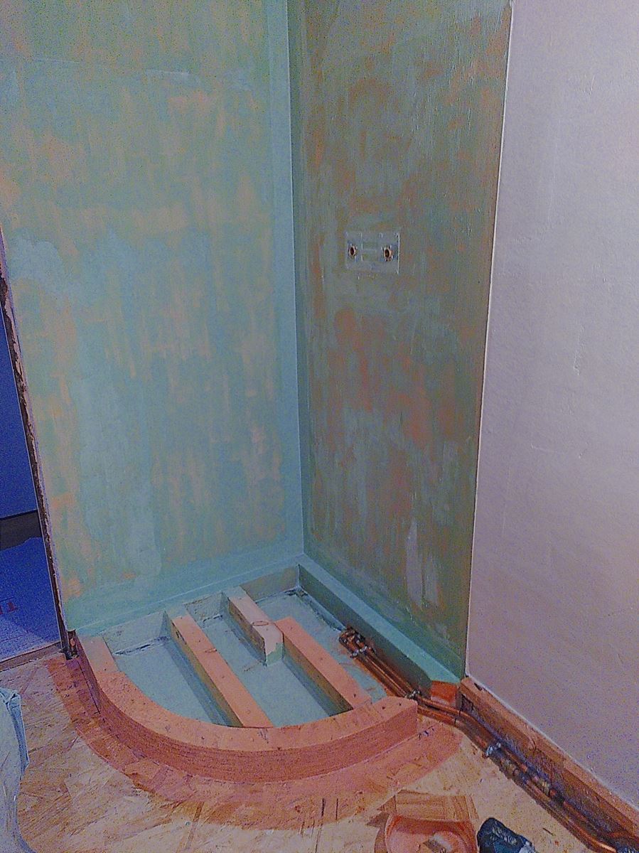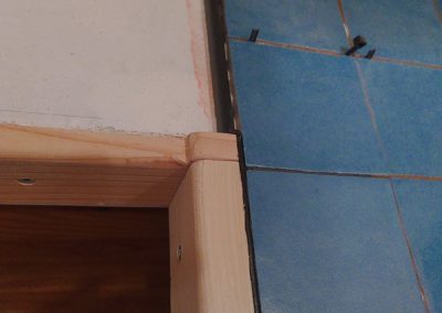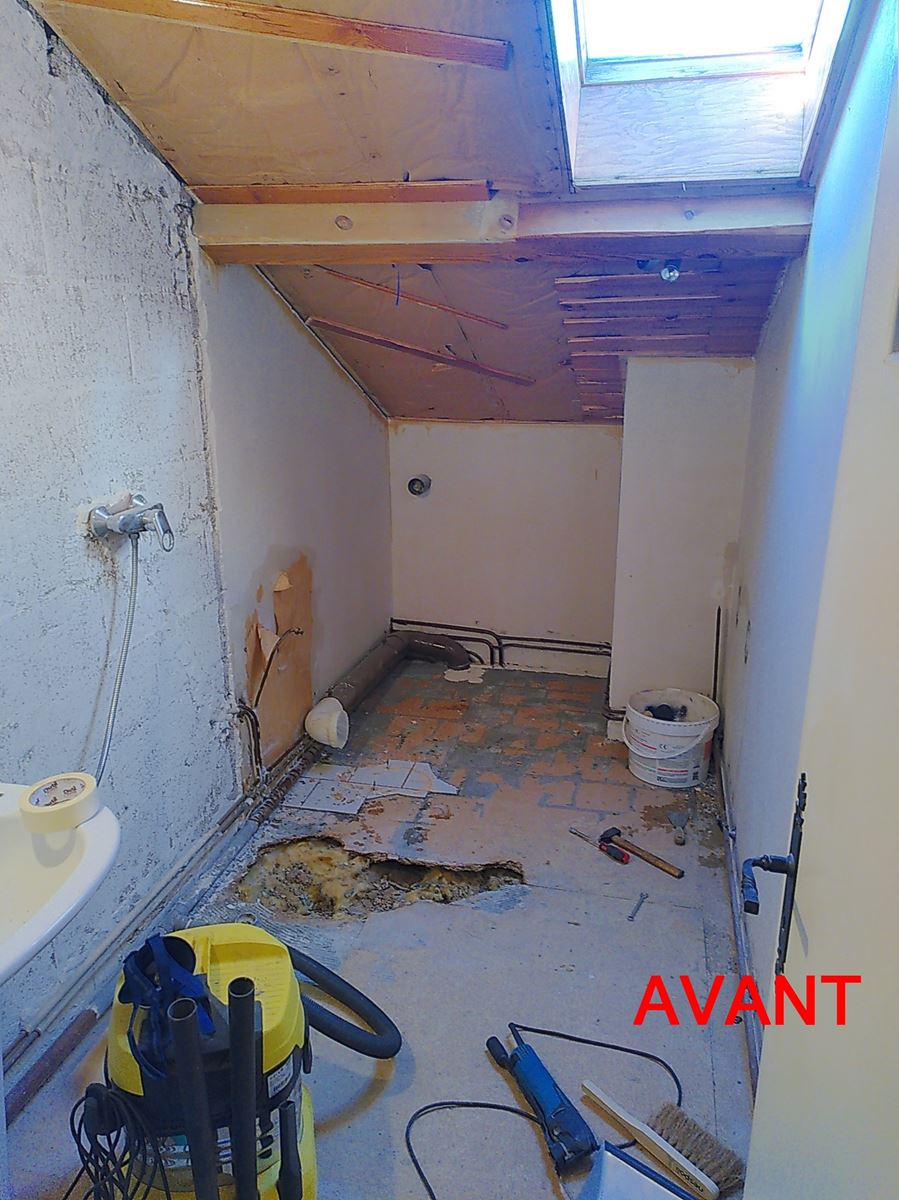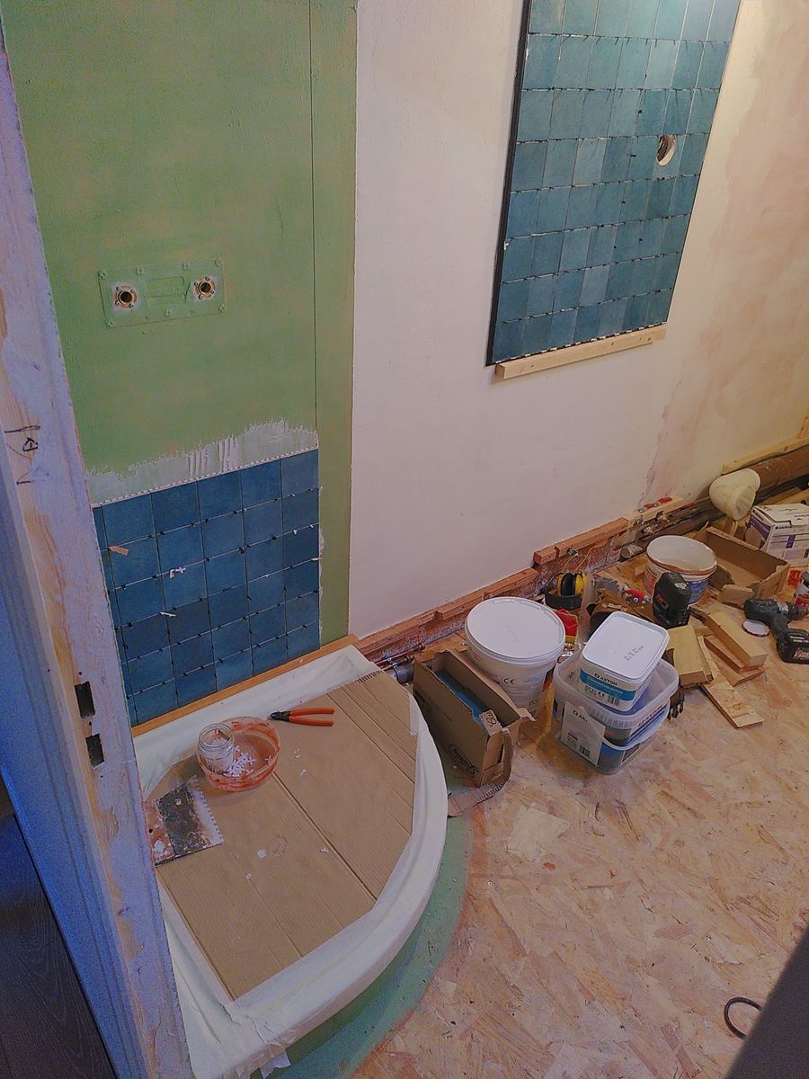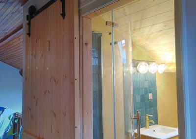 -Enduit argile ton crème au dessus du lavabo et ton naturel pour le reste de la pièce, très bon régulateur d’humidité.