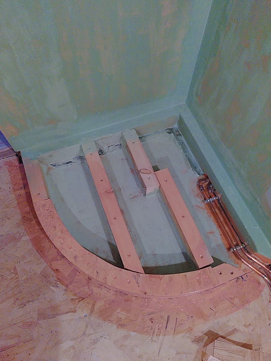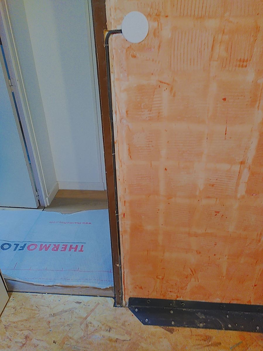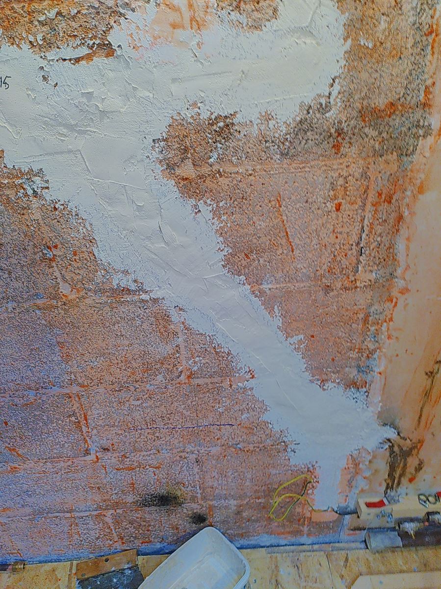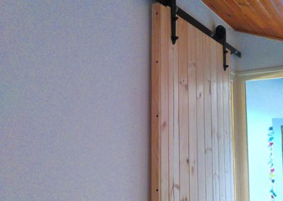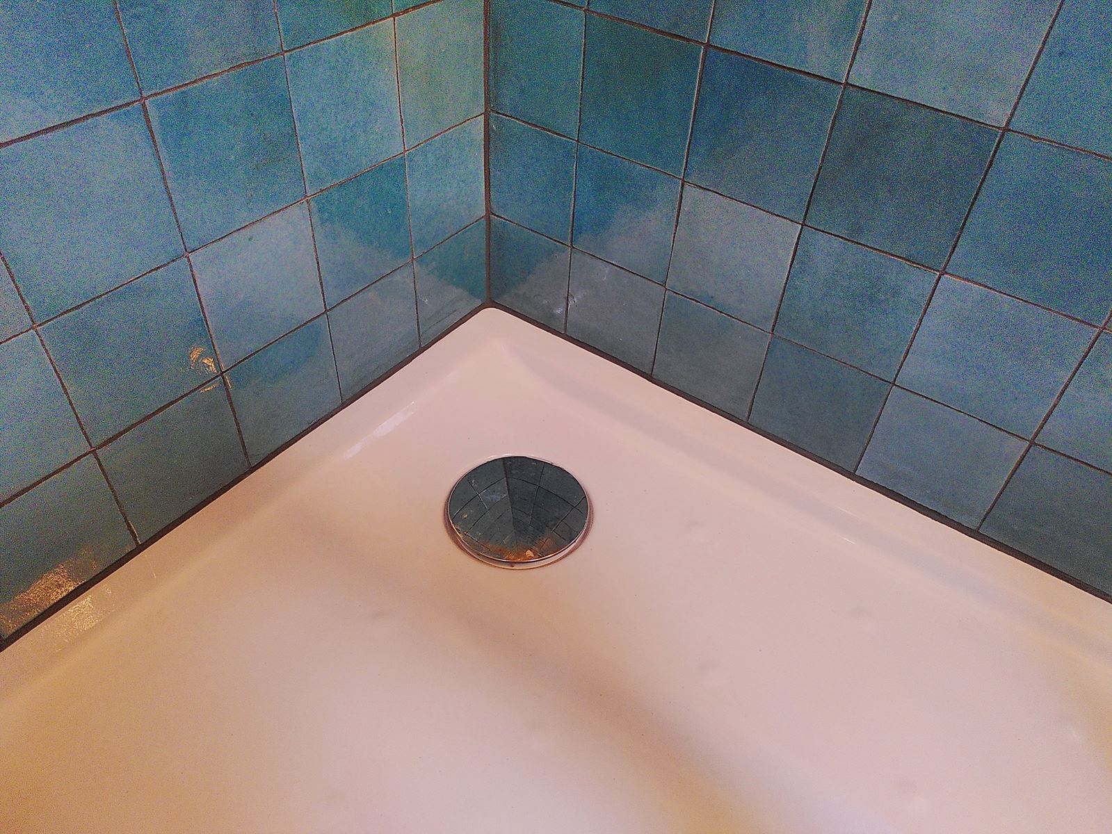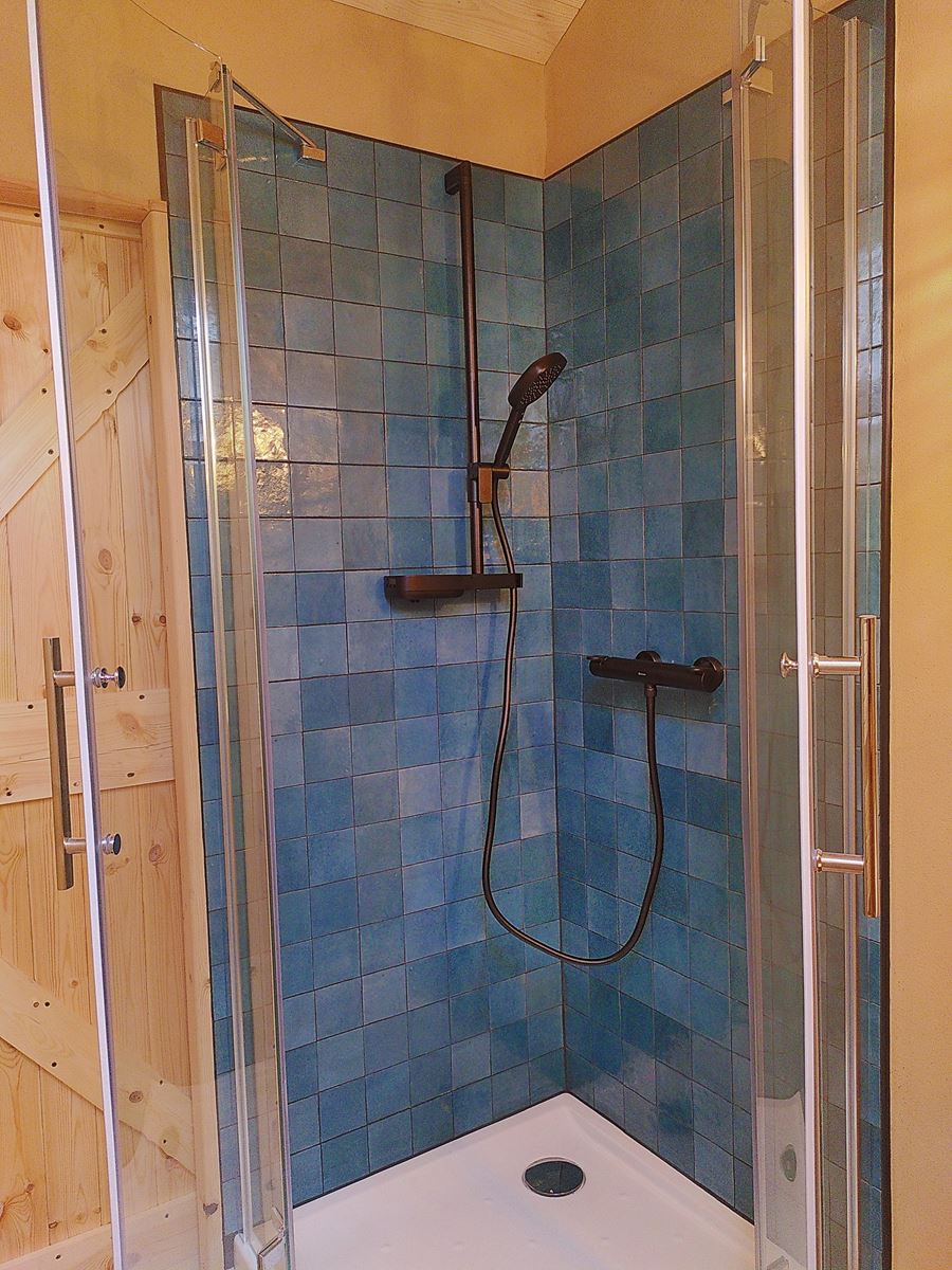 -Enduit argile ton crème au dessus du lavabo et ton naturel pour le reste de la pièce, très bon régulateur d’humidité.